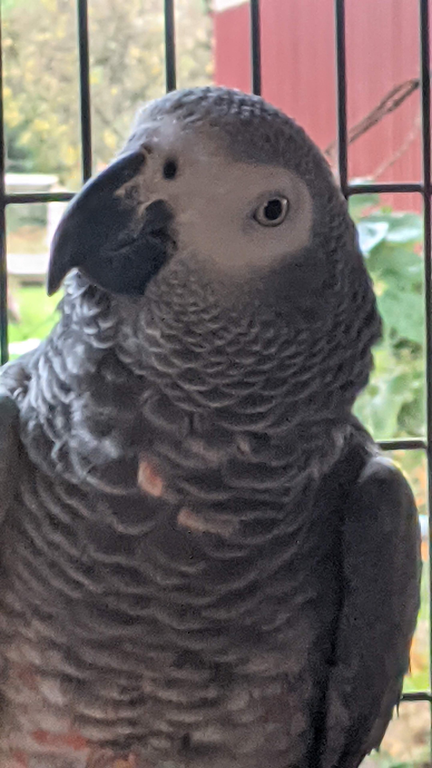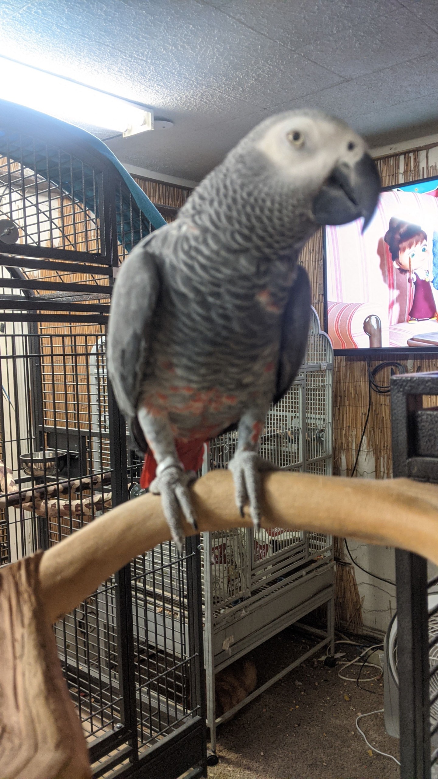 Digger is a part Red Factor African Grey, who was part of a large rescue of parrots. We have learned a lot about his personality since his rescue. Thumper is hand tame, and he’s is very sweet and thrives for attention.