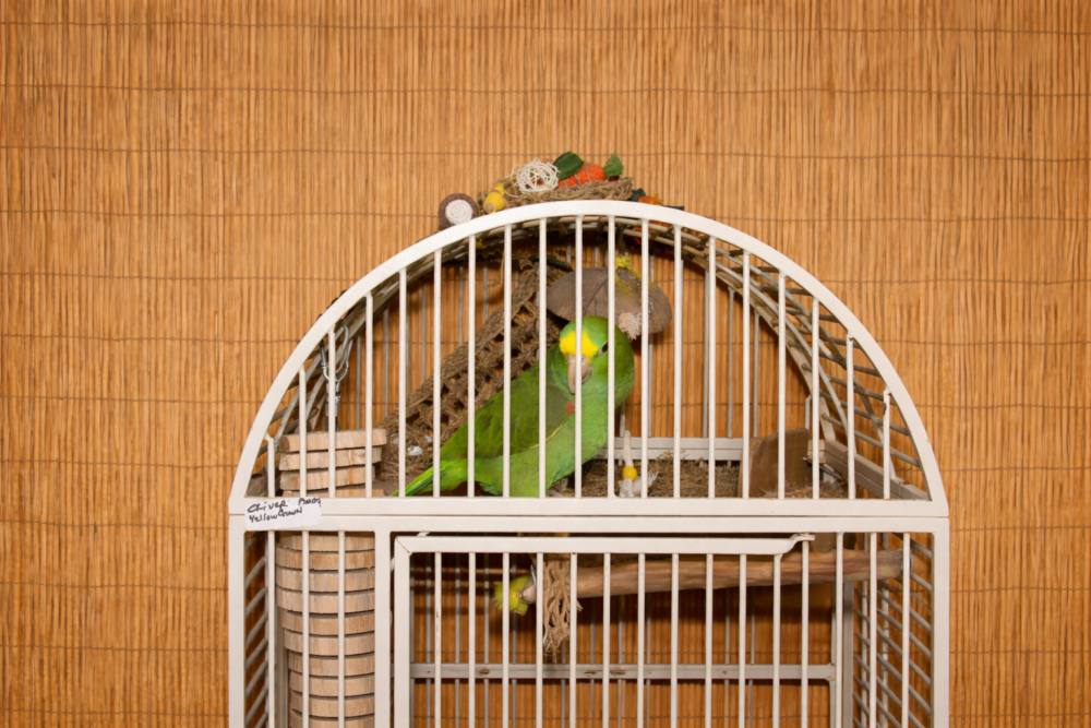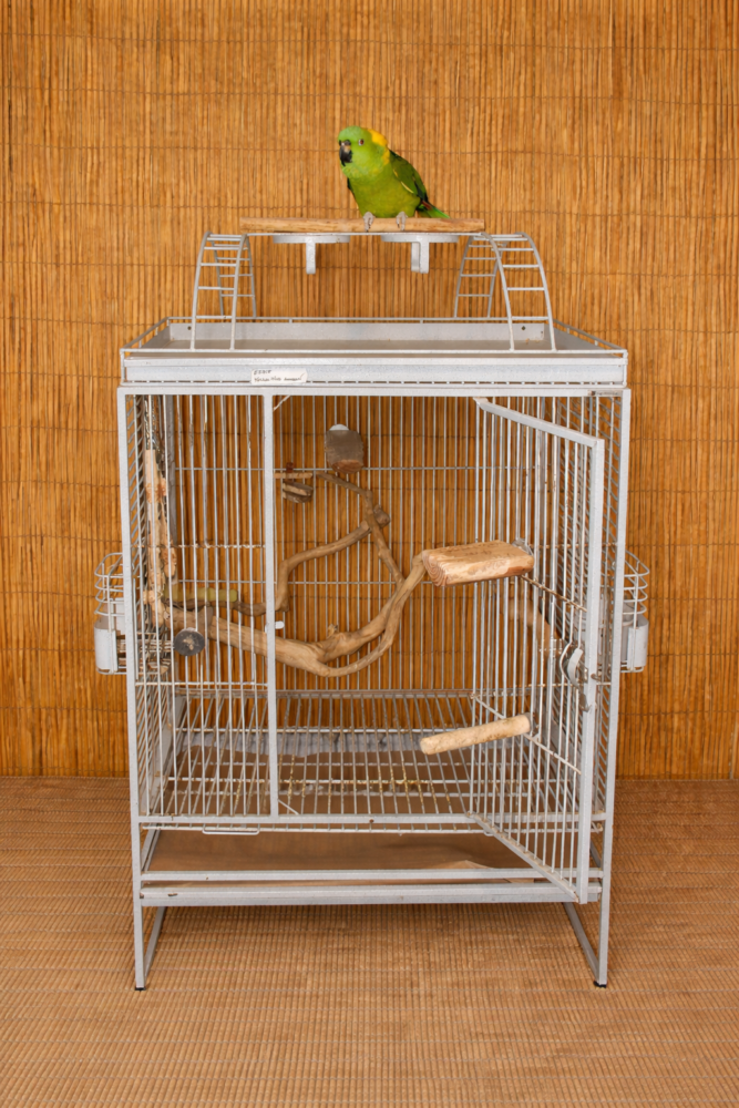 Their adoption package is extremely generous—it includes both of their cages, two brand-new custom parrot carriers, and our exclusive $500 care package to help them settle comfortably into their new home.
