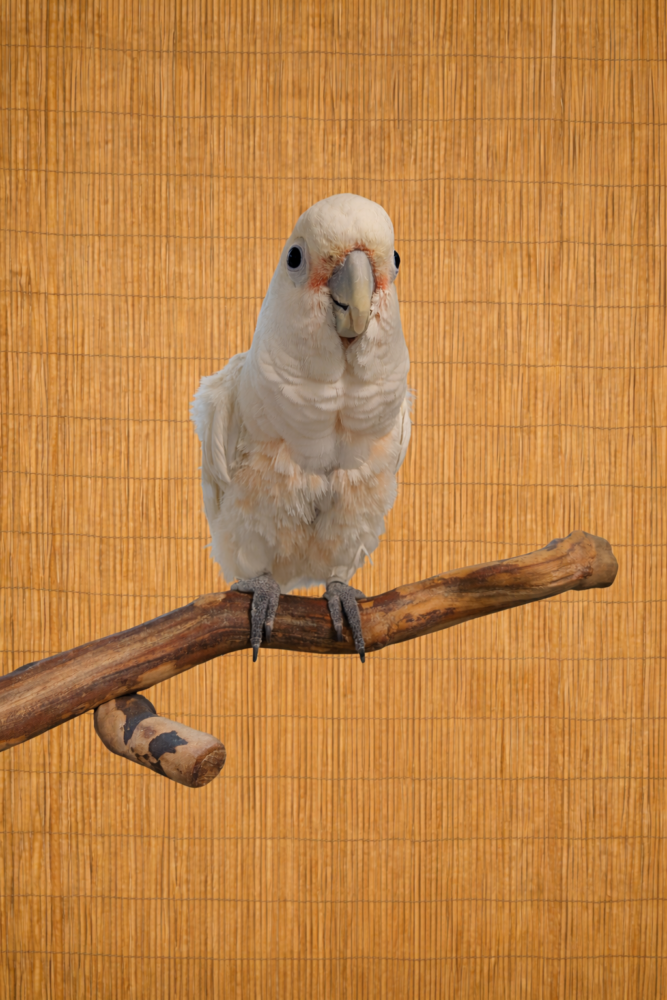 Melrose is an energetic 27 YO male tame Goffins Cockatoo who loves to be on a shoulder of his companion.