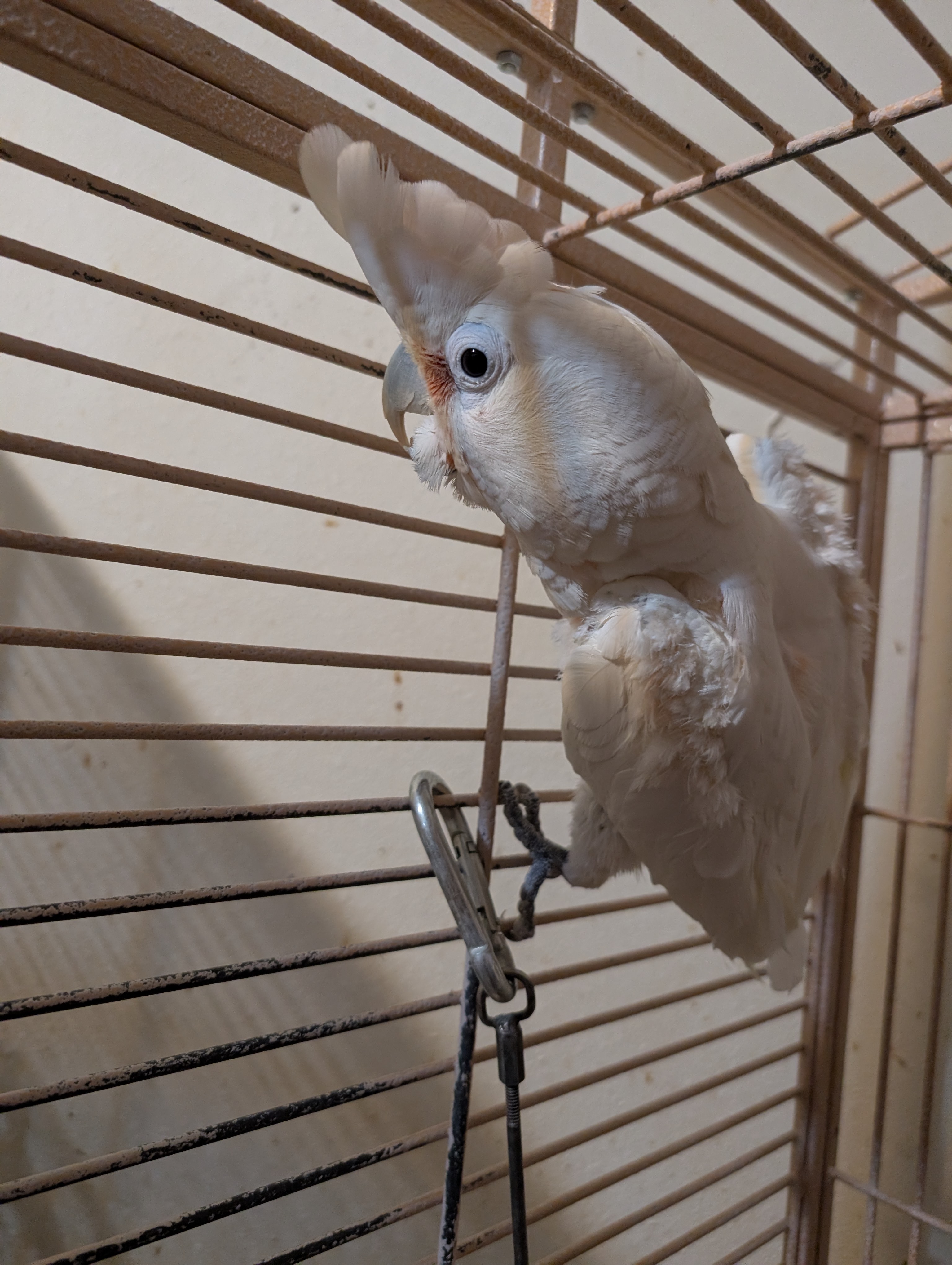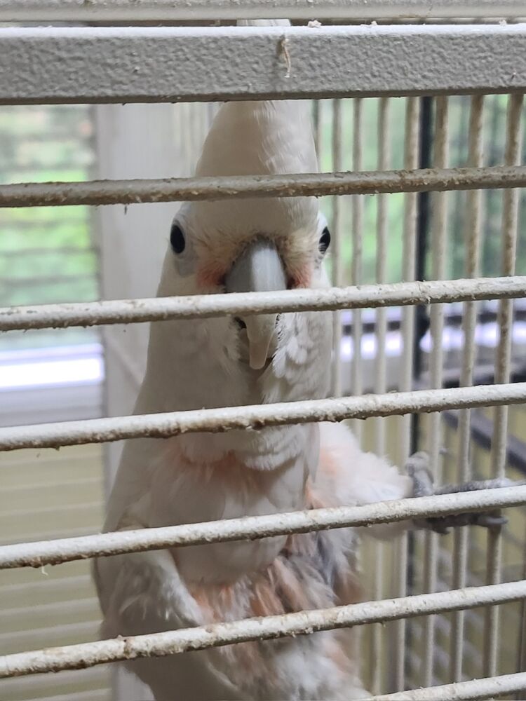 Murray is a lively, 20-year-old Goffin’s Cockatoo who absolutely loves to talk! He’s a semi-tame boy with a big personality, looking for a special someone to help him grow back his chest feathers and continue building his confidence.