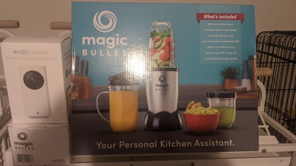 A Free Magic Bullet Blender with 2 types of blades. For quick Chop & making our nut blends for treat topping.