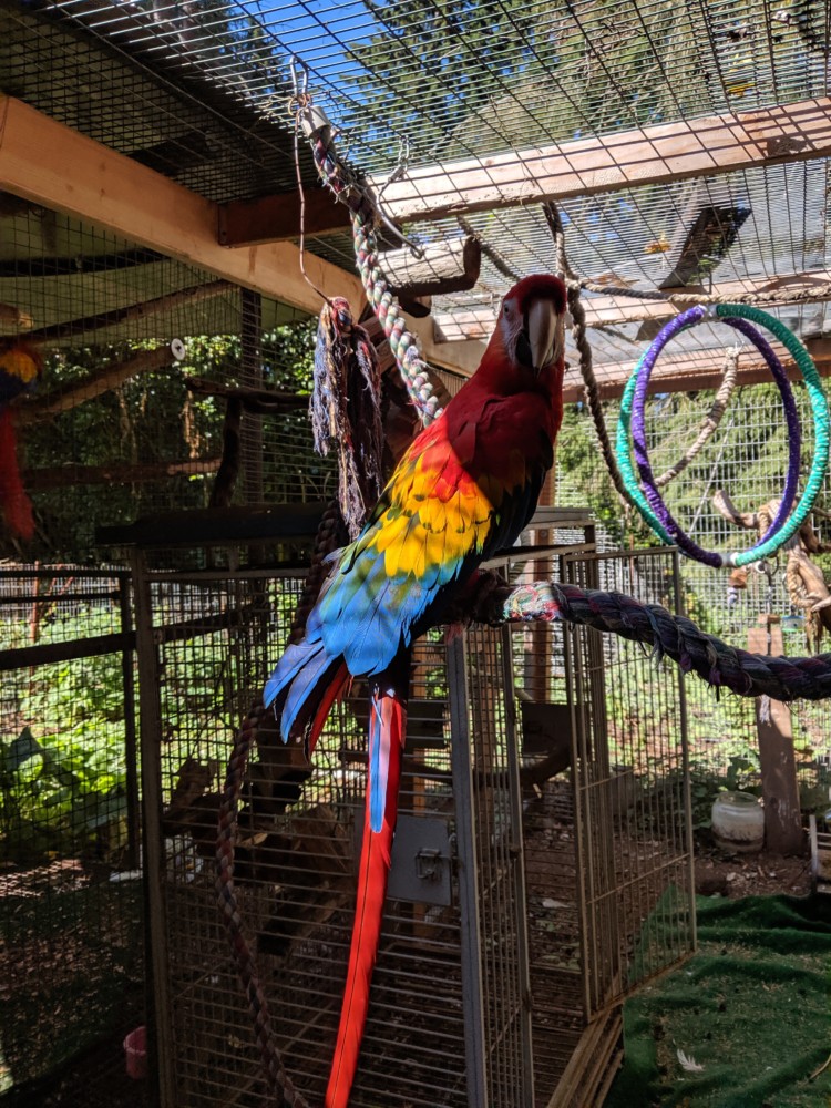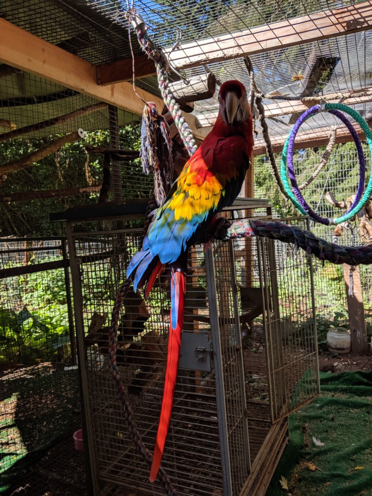 If you can offer Shy-Anne’ her freedom to stay out of her cage, and you’re if your ready to adopt Shy-Anne’, she doesn’t get along well with macaws or other birds. So if you are ready to adopt, please read the qualifications to adopt found at the top of our adoption application. Then submit your application, and we will get back to you to as soon as we can to give you all of the details about Shy.
